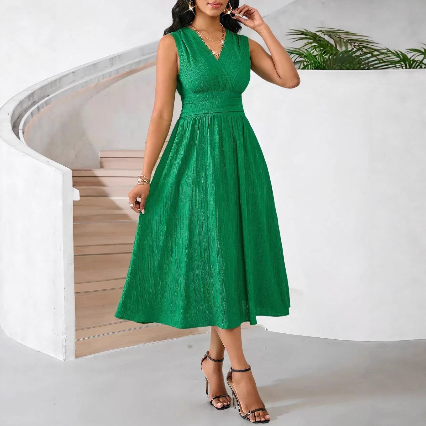 Solid-color Dress With A V-neck For An Elegant Sophisticated Look