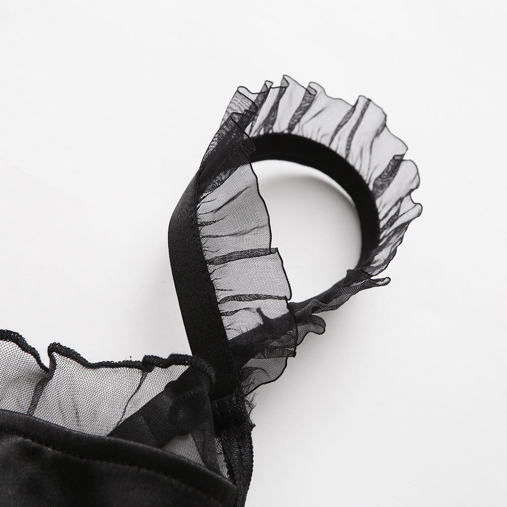 Womens Lace-trimmed Bodysuit Mesh Sexy Lingerie